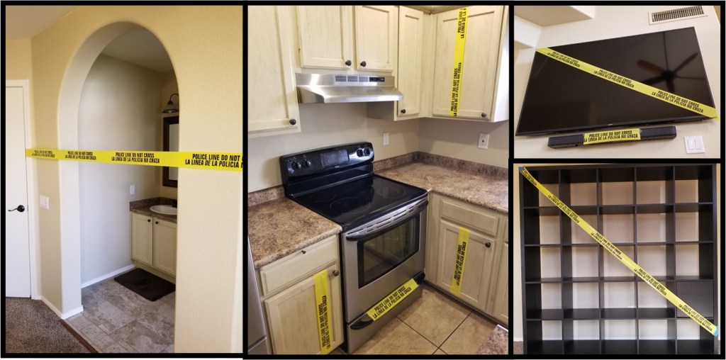 I had already gone out earlier that morning to buy the crew some refreshments and was finishing the monumentally important task of marking my belongings. It is the nature of movers to take anything not bolted to the home and put it in their truck, no questions asked. This can quickly become a major headache for those of us simultaneously utilizing any two or more of the half-dozen different categories of storage and shipping I discussed in my previous post. Most people use various colors of sticky notes or painter’s tape with a detailed legend that would make even Lewis and Clark proud. This technique works great, assuming the adhesive strips don’t fall off and the movers actually stop to decipher the color key. Since my packout was slated to be rather straightforward, I resorted to an infallible and familiar method of identifying what should be left alone, using what I already had on hand: crime scene tape.