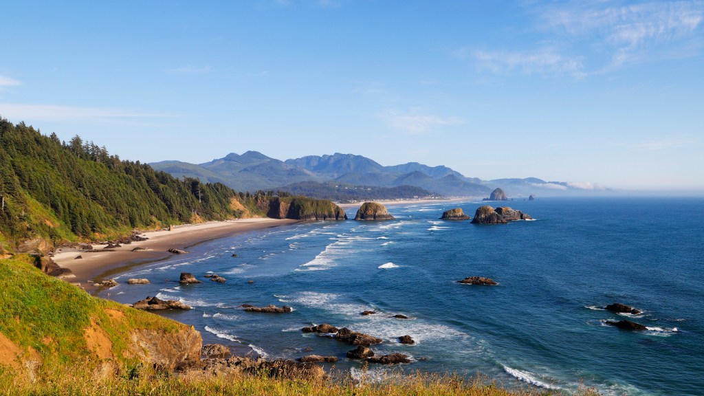 A drive along the Oregon coast is thankfully just as picturesque and serene as portrayed on television and in the imagination. Cannon Beach is a popular stop along the Pacific Coast Highway. Unsurprisingly, it has been listed in National Geographic’s “100 Most Beautiful Places”. The town of 1,500 is home to one of Oregon’s most recognizable landmarks: Haystack Rock. The 235-foot-tall basalt formation is fifteen million years old and attracts tourists as well as movie producers. It is visible in the 1985 film The Goonies as the Fratelli family escapes the police.