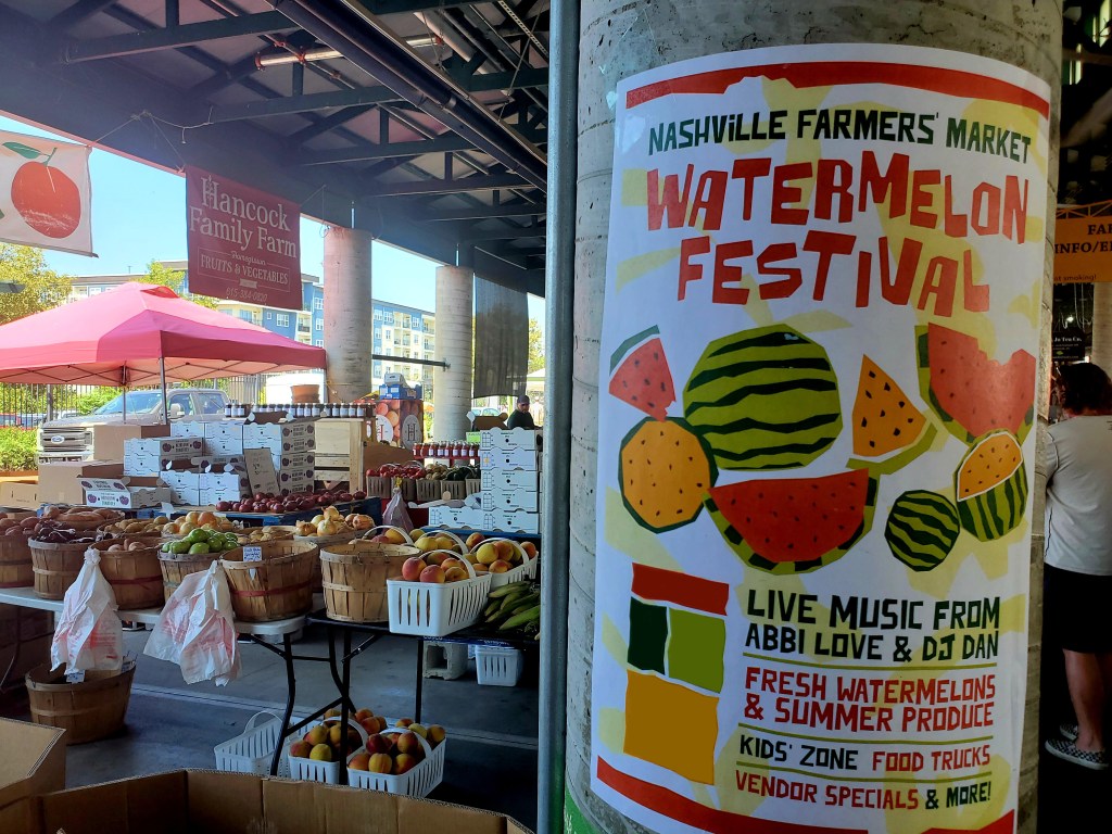 I did manage to eat more than just fried comfort food during my trip to Tennessee. I was pleasantly surprised to discover that my visit to the Nashville Farmers’ Market happened to be during their first annual Watermelon Festival. At first glance the Nashville Farmers’ Market appears similar to any other: a combination indoor-outdoor market with fruits and vegetables, honey, jam, pastries, cheese, etc. spread among the booths of vendors selling their various trinkets. But the history goes back to 1802 when the market was first opened as a means for farmers to bring their goods into town. It has evolved today to include a pub and some 30 eateries in addition to the market vendors.