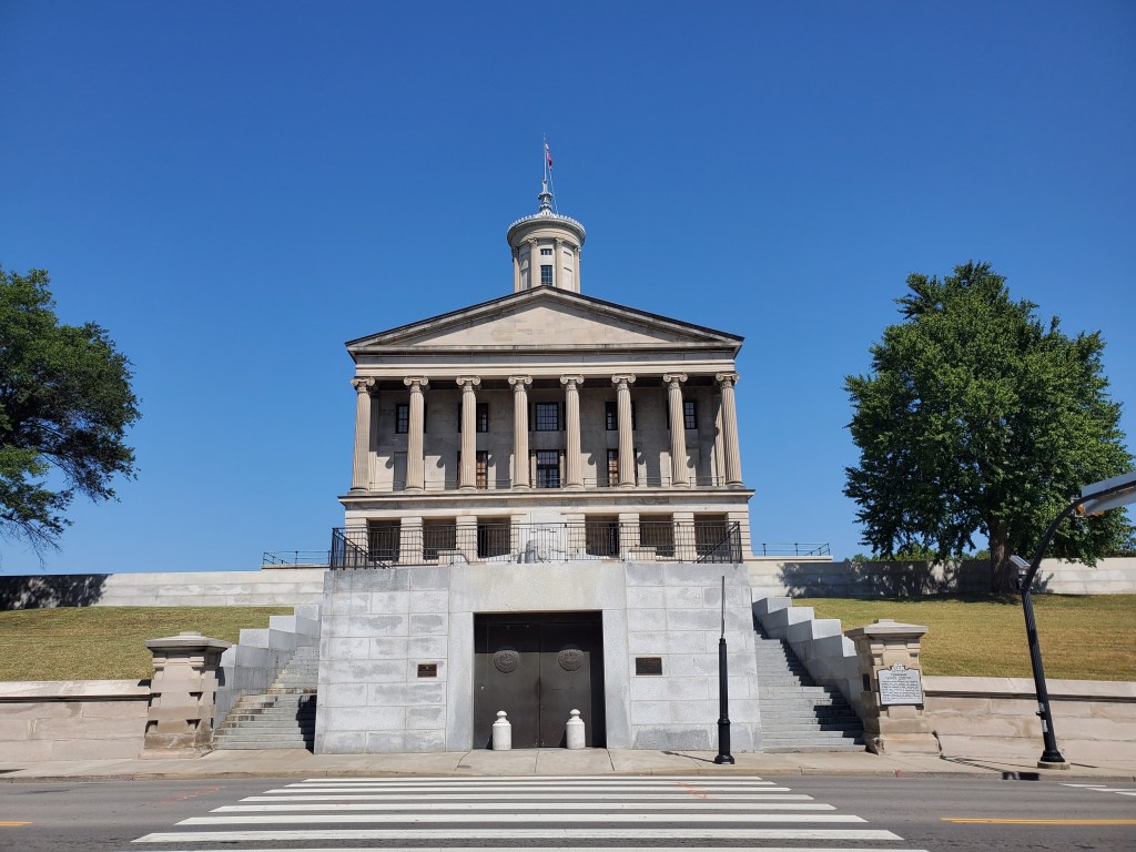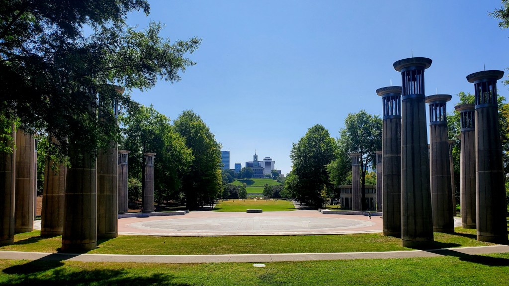 The Nashville Farmers’ Market is adjacent to the 11-acre Bicentennial Capitol Mall State Park which opened in 1996 on the 200th anniversary of the statehood of Tennessee. The picture above was taken from the Court of Three Stars and the Carillon, which contains 95 bells representing the counties in Tennessee. The Carillon plays music, including the Tennessee Waltz at the top of every hour. The view across the park to the Capitol is quite lovely especially on a day with pleasant weather.