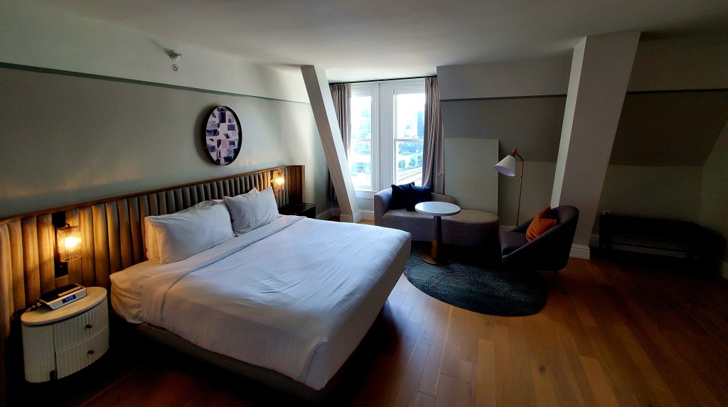 The Union Station Nashville Yards, part of Marriott’s Autograph Collection, ended up being the perfect selection for respite. The hotel has high enough ratings (4.6 on Google, 4.5 on Tripadvisor) while maintaining moderately low room rates. Its location on Nashville’s notorious Broadway is walking distance to everything in the Capital of Country Music, but not so close that the noise of the honky-tonks can reach it.