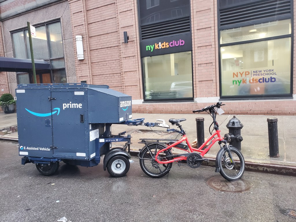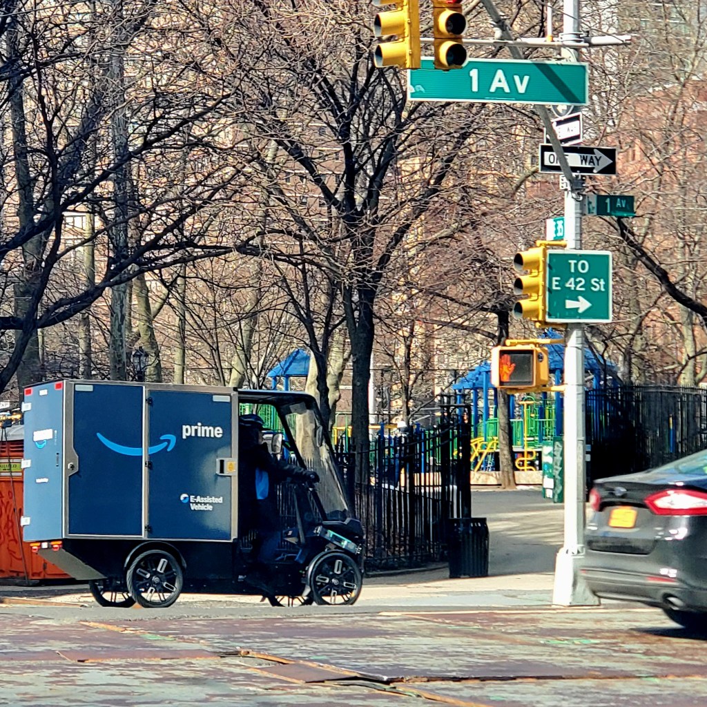 Amazon deliveries are not immune from the congestion of the Big Apple either. The unique e-assisted vehicles are seen constantly weaving their way through the hustle and bustle of the city.